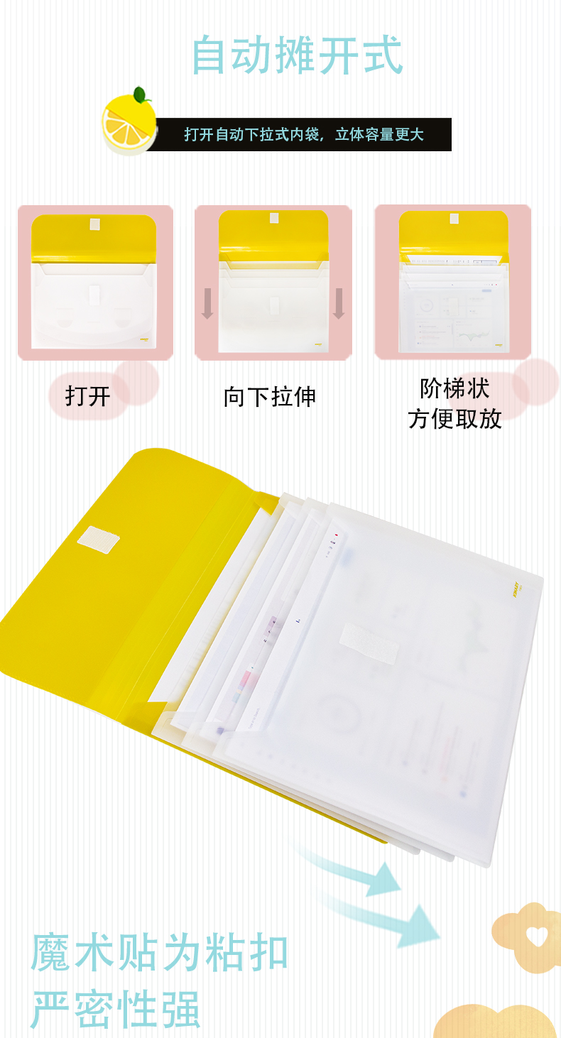 金得利A 4自動拡張式オルガンバッグ4階分類書類袋マジックステッチ書類袋学生用ペーパーバック収納バッグFM 04シングルカラーランダム