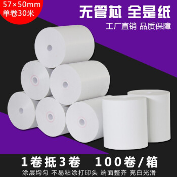 冠华无管芯收銀紙57*50サーマルペーパー58 mmレシート印刷機排紙57*50無管芯100巻【写真価格ブランド見積】-