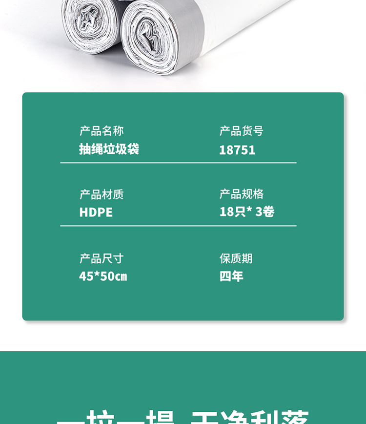 得力(deli)45*50 cm抽縄式ゴミ袋携帯坚固大容量家庭用品3巻入ホワイト1818181851