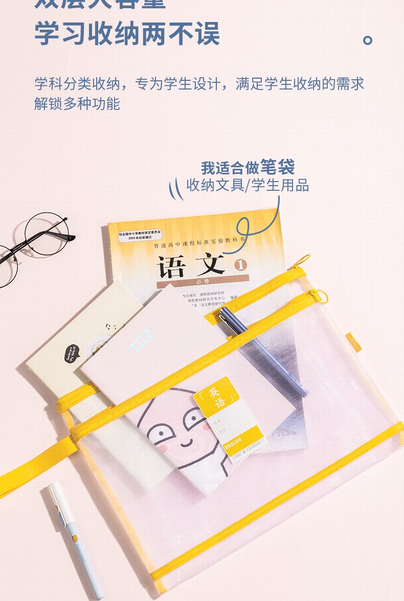 得力A 4科目分类文件袋学科ジッパー袋学生网纱作业试卷收纳袋二层大容量资料袋中高生用国语分科书补习袋二层4个【国语+数学+英语+総合】【图价格ブランド报价】-