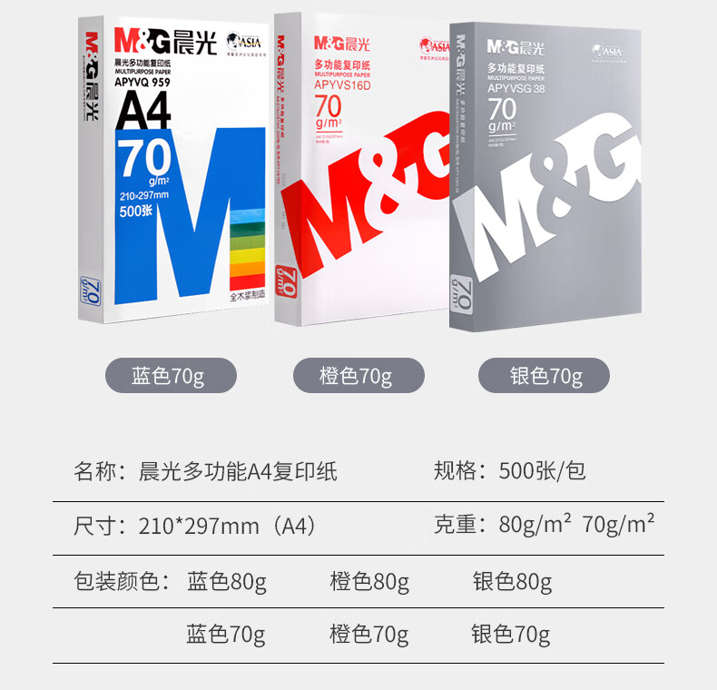 晨光(M&G) a4打印纸复印纸70g白纸单包一包500张整箱5包一箱A4打印纸品打印机纸草稿 【特价款】A4-70g丨300张【图片 价格 品牌 报价】-